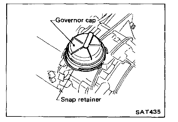 4. Remove snap retainer, governor cap with breather hose and O-ring.