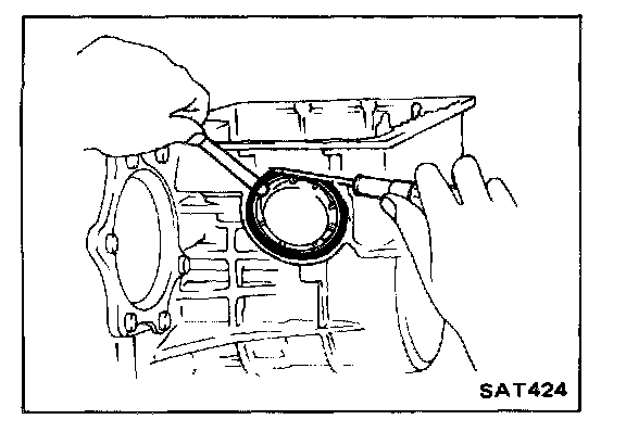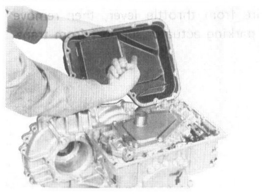 5. Remove oil pan guard and oil pan and inspect its contents. An analysis of any foreign matter can indicate the types of problems to look for. If the fluid is very dark, smells burned, or contains foreign particles, the frictional material (clutches, band) may need replacement. A tacky film that will not wipe clean indicates varnish build up which can cause valves, servo, and clutches to stick and may inhibit pump pressure.