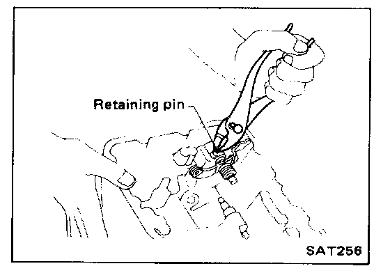 8. Pull out retaining pin, then remove throttle lever, manual plate, manual shaft, selector range lever and parking rod assembly.