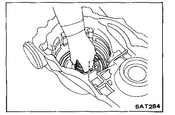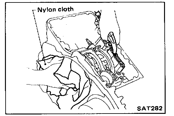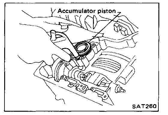 Be sure to hold low and reverse brake piston with nylon cloth so that they do not jump out.