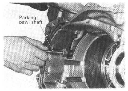 25. Pull out parking pawl shaft, then remove parking pawl and return spring.