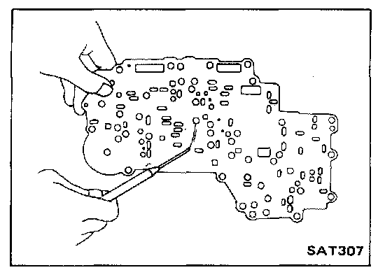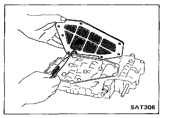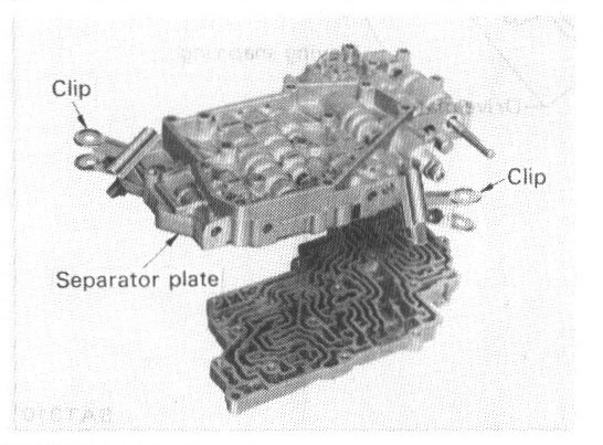 2. Disassemble valve body and its remaining attaching bolts and nuts to carefully separate lower body, separator plate and upper body.