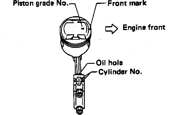 d. Arrange so that front mark on piston head faces toward front of engine.