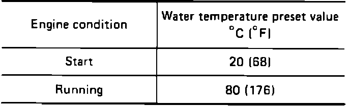 When the ECU senses that the engine temperature output voltage is out of the normal range, it will substitute voltage at preset values. Refer to the figure for operating conditions.