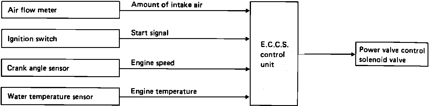 During high engine load or rpm's, the power valve opens. This allows less resistance in the intake flow, increasing intake capacity. The power valve is controlled by the ECU via the power valve control solenoid. The ECU supplies the ground circuit for the solenoid.