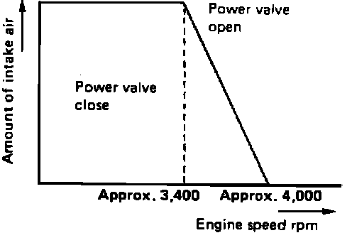 At low engine speed or load condition, the power valve is closed. This increases the intake air velocity. This produces a swirl effect in the combustion chamber promoting better vaporization of the A/F mixture. This effect causes the mixture to burn faster, improving fuel economy and engine stability.