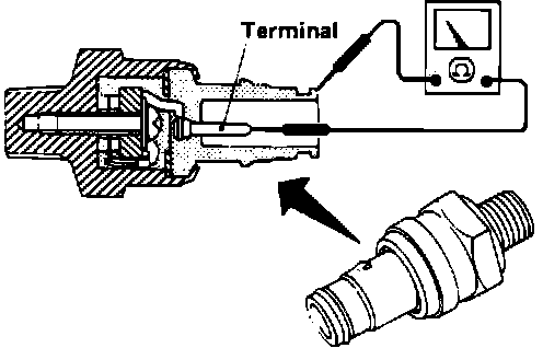 Using an ohm meter check for continuity between the sensor and ground as shown.