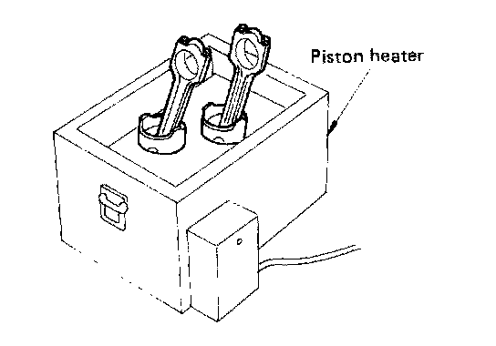 2. Heat piston to 60 to 70°C (140 to 158°F) and assemble piston, piston pin, connecting rod and new snap ring.