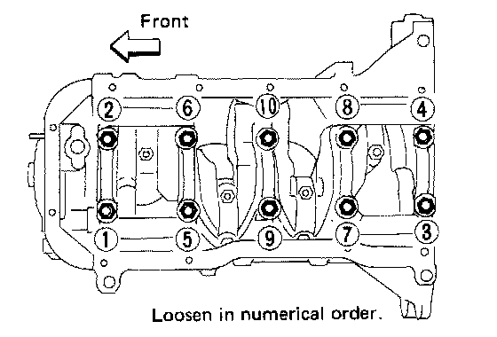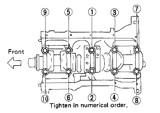 ^ Tighten bearing cap bolts gradually in two or three stages. Start with center bearing and move outward sequentially.