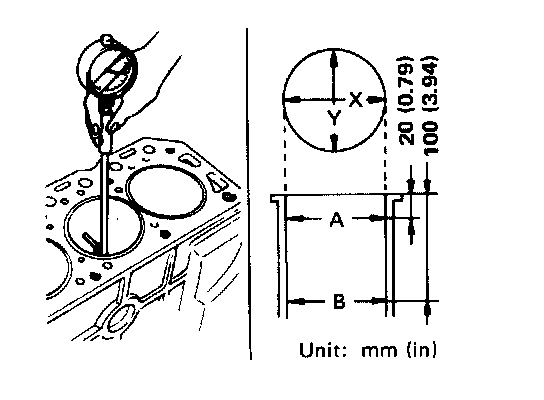 1. Using a bore gauge, measure cylinder bore for wear, out-of-round and taper.
