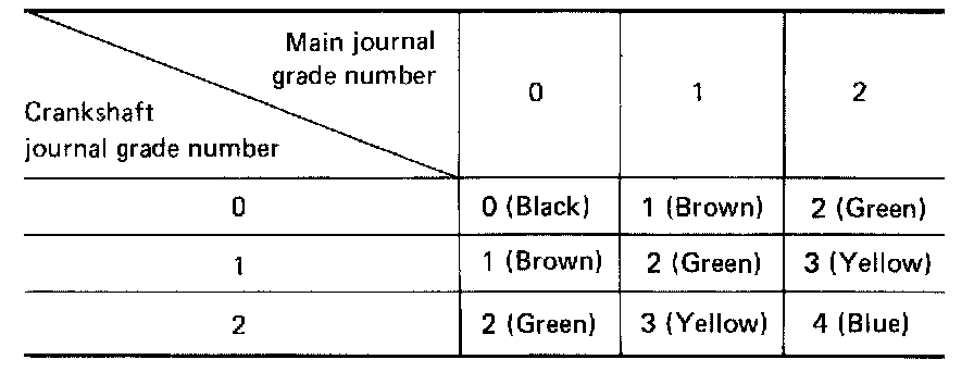 Main bearing grade number (identification color) 1 + 2 = 3 (Yellow)