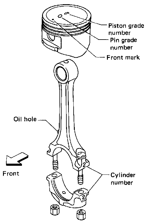 ^ If both cylinder block and piston are replaced with new ones, select piston of the same grade number punched on cylinder block lower surface.