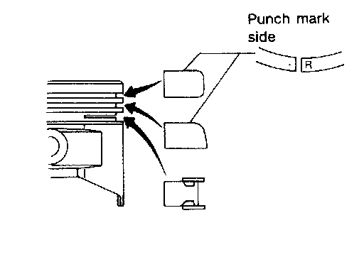 ^ When piston rings are being replaced and no punch mark is present, piston rings can be mounted with either side up.