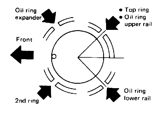 ^ When piston rings are not replaced, make sure that piston rings are mounted in their original positions.