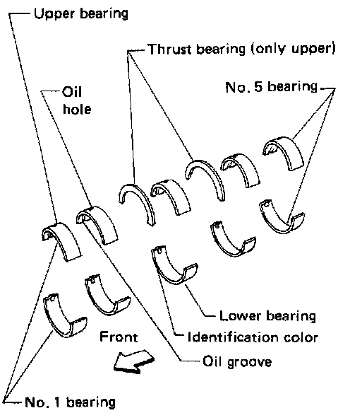 ^ Confirm that correct main bearings are used. Refer to "Inspection".