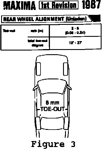 Nissan uses two (2) different terms to describe "Rear Toe". "Toe-In" and "Toe-Out". Contemporary wheel alignment equipment measures rear "Toe-In" and, if the wheels are actually "Toed-Out", displays the measured values as a negative (Figure 4).