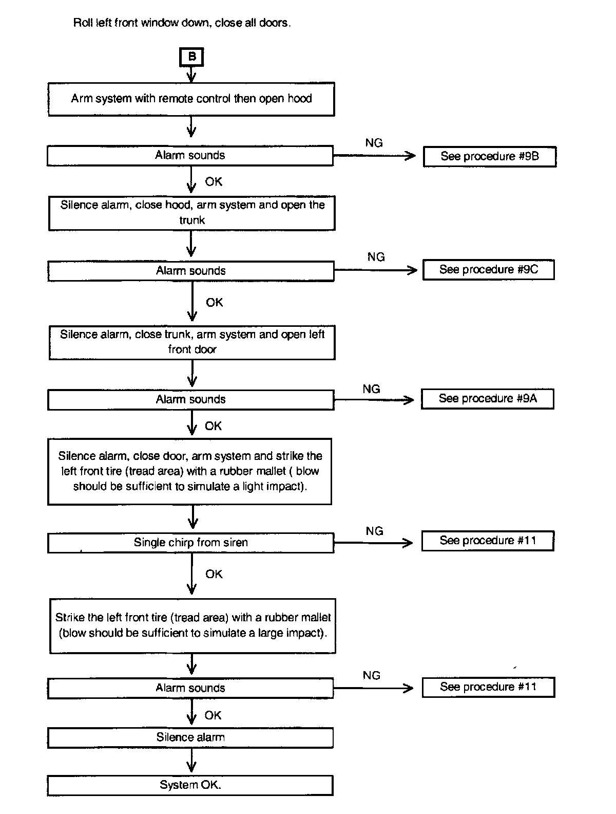 Before beginning "System Operational Check", turn the ignition key on, roll down the drivers side window, turn the ignition off and remove the key. Close all doors, trunk and hood.