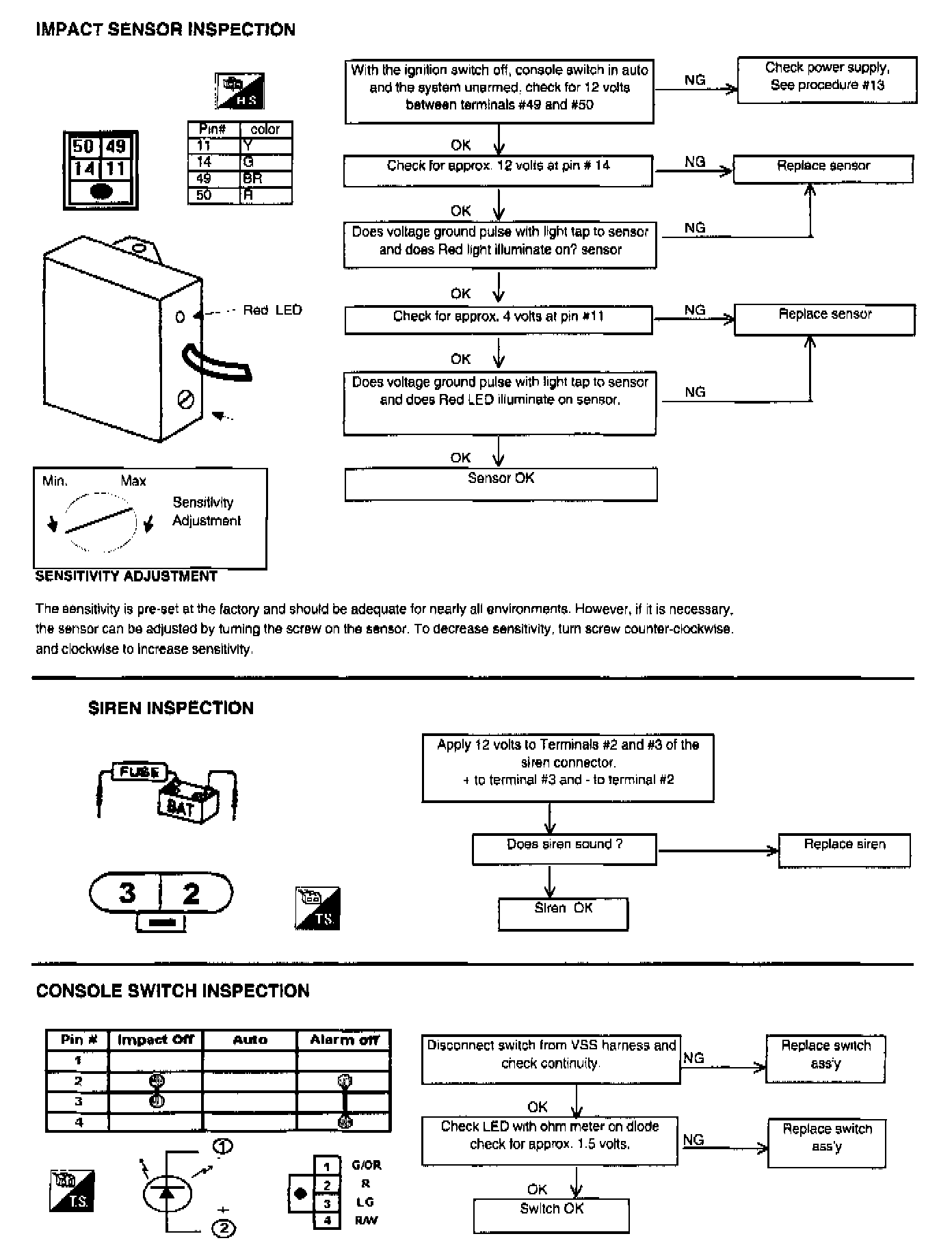 IMPACT SENSOR INSPECTION, SIREN INSPECTION, CONSOLE SWITCH INSPECTION