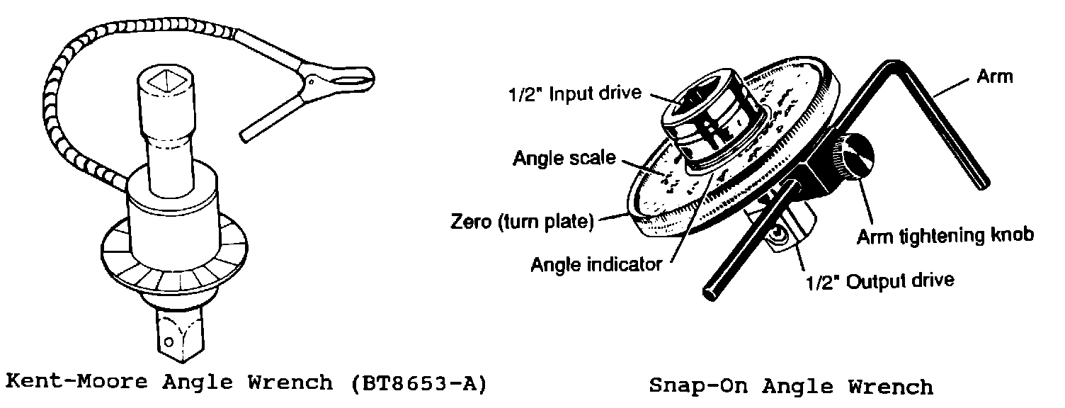 A suitable angle wrench can be obtained from the Kent-Moore and the Snap-On Companies.