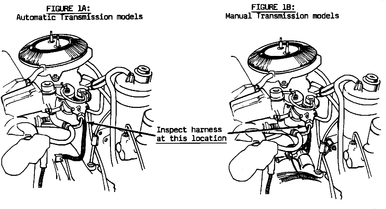 1. Pull the tie wrap down from the manifold retaining hole, located under the air cleaner assembly, next to the E.G.R. valve (Figures 1A and 1B).