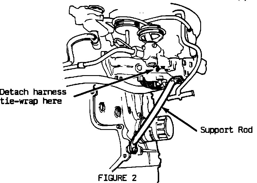 3A. If there are no signs of damage, reposition the harness next to the manifold support rod (Figure 2), located between the intake manifold and engine block, next to the oil filter. Using a new tie wrap, secure the harness to this location.