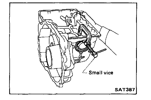 6. Lubricate band servo piston O-ring and install band servo piston O-ring, return spring and snap ring holding piston with a small vice.