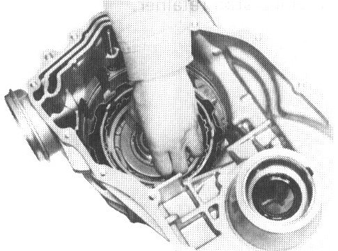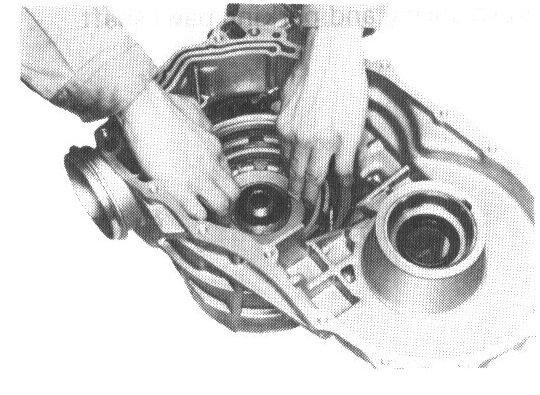 b. Press bearing outer race into converter housing.