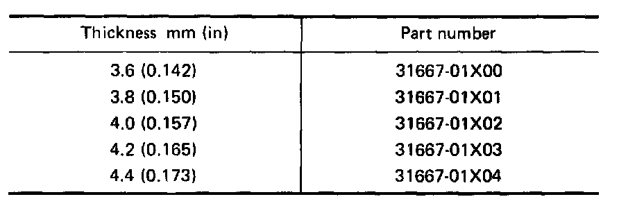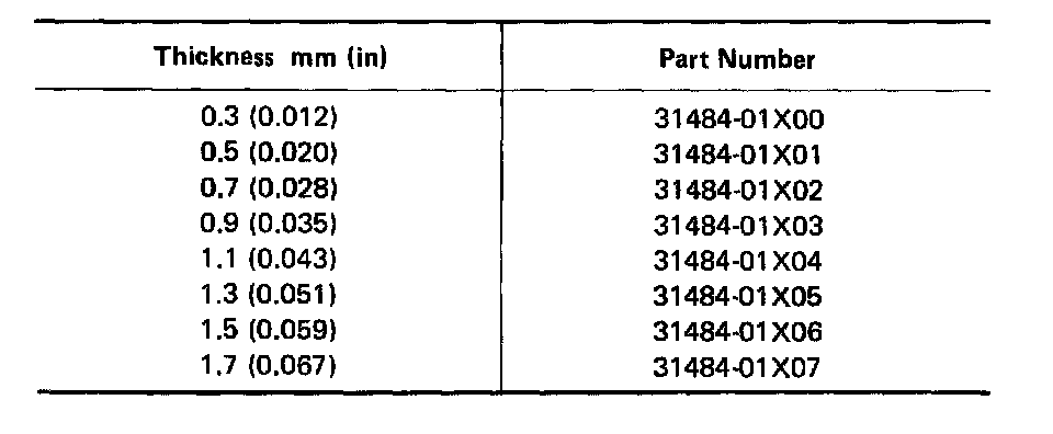 Available shims: Refer to S.D.S. Specifications