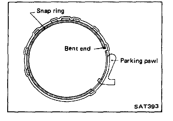 Ensure that its bent end is positioned so that it does not interfere with parking pawl.