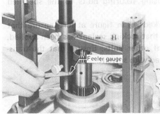 e. Use feeler gauge to measure gap between gauging cylinder and shoulder of gauging plunger.