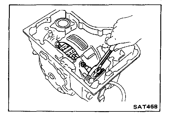 37. Before installing oil pan, check alignment and operation of manual lever and parking paw engagement. Blow mechanism with air to clean.