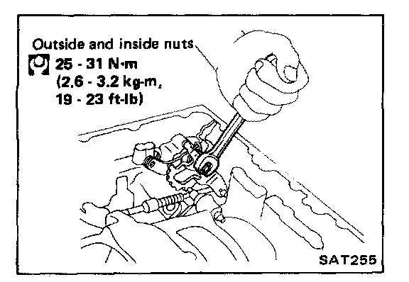 35. Install throttle lever, manual plate, selector range lever and parking rod assembly, then tighten manual shaft securing nuts.