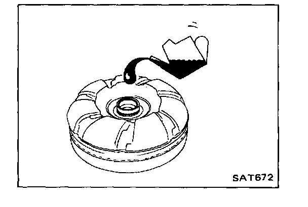 44. Pour approx. 2 - liters (2 - 1/8 US qt, 1 - 3/4 Imp qt) of automatic transmission fluid into torque converter.