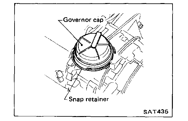 4. Remove snap retainer, governor cap with breather hose and O-ring.