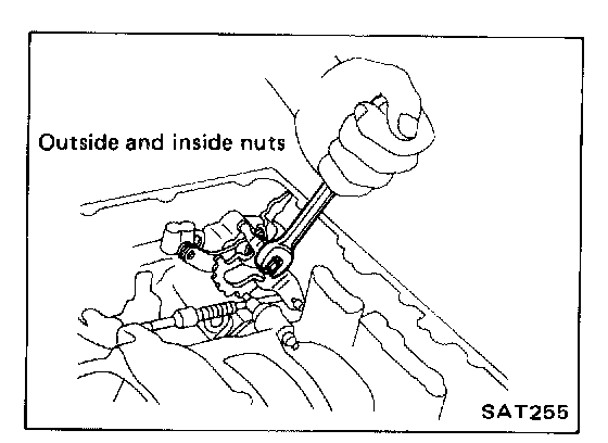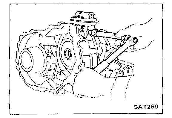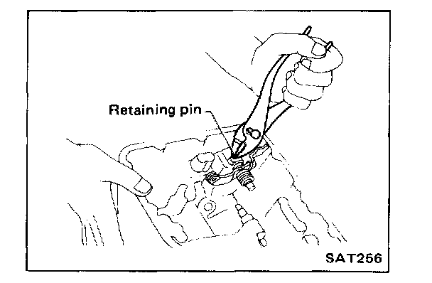 8. Pull out retaining pin, then remove throttle lever, manual plate, manual shaft, selector range lever and parking rod assembly.