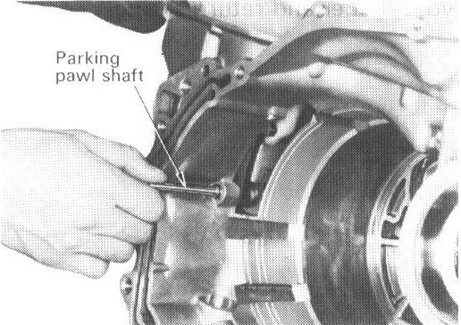25. Pull out parking pawl shaft, then remove parking pawl and return spring.