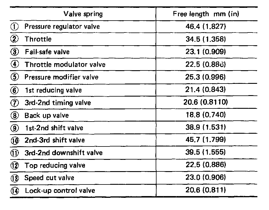 5. Check valve springs for damage, Measure free length of valve springs. If the free length is out of specification, replace it. Numbers of each valve spring listed in table below are the same as those in the figure at the top.