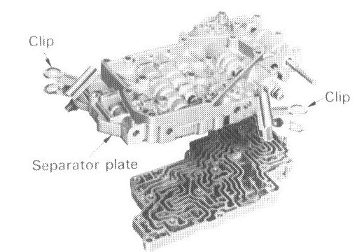 2. Disassemble valve body and its remaining attaching bolts and nuts to carefully separate lower body, separator plate and upper body.