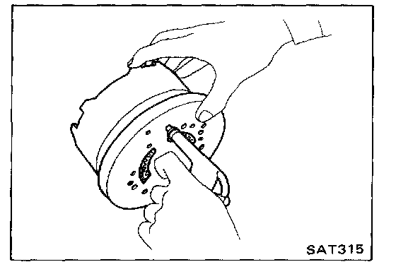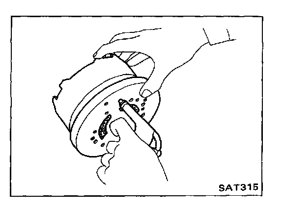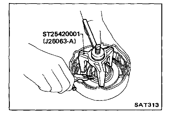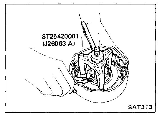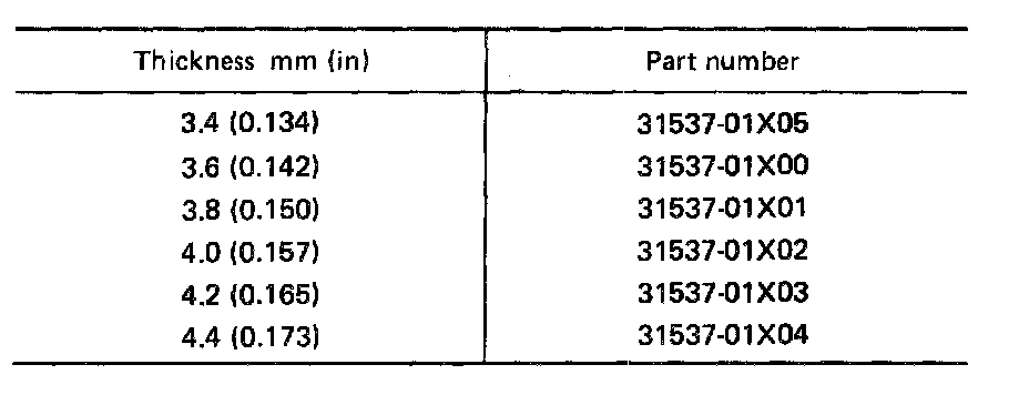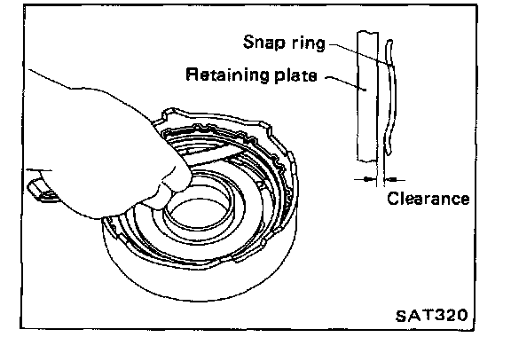 7. Measure clearance between retaining plate and snap ring. Always measure the existing minimum clearance, since snap ring is a wave type.
