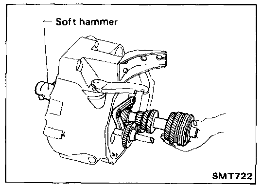 c. Remove input shaft together with bearing retainer and reverse idler gear by tapping lightly.