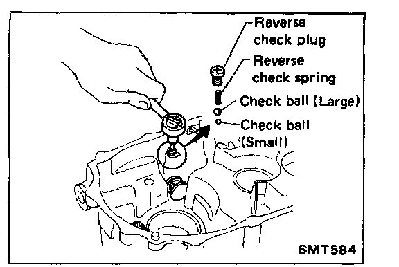 7. Remove reverse check plug, then detach reverse check spring and check balls.