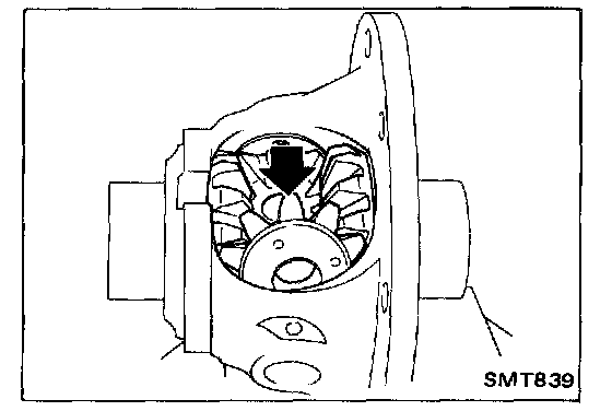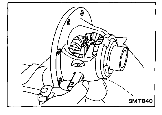 c. If not within specification, adjust clearance by changing thickness of side gear thrust washers.