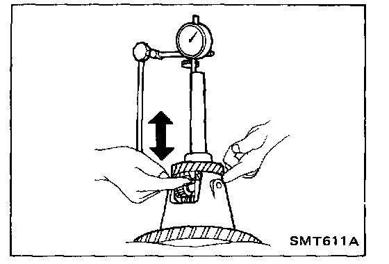 b. Move side gear up and down to measure dial indicator deflection. Always measure indicator deflection on both side gears.