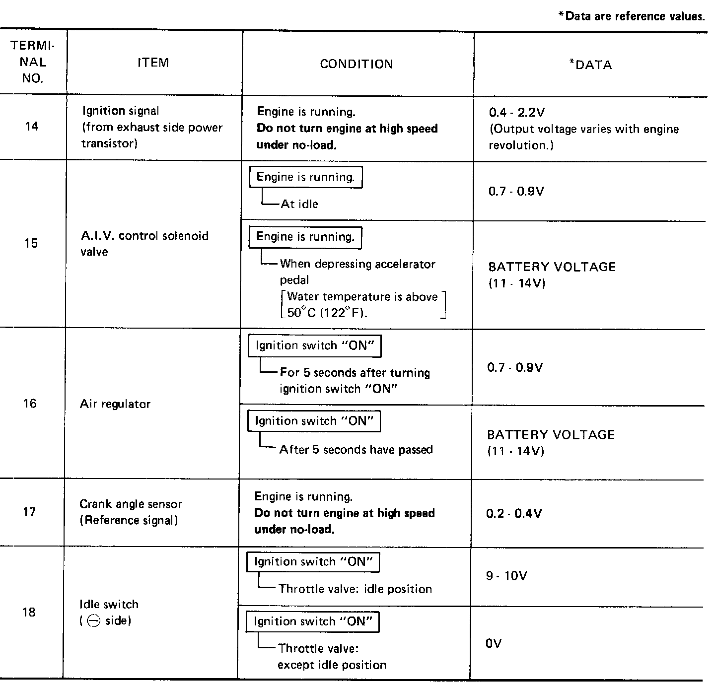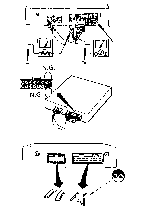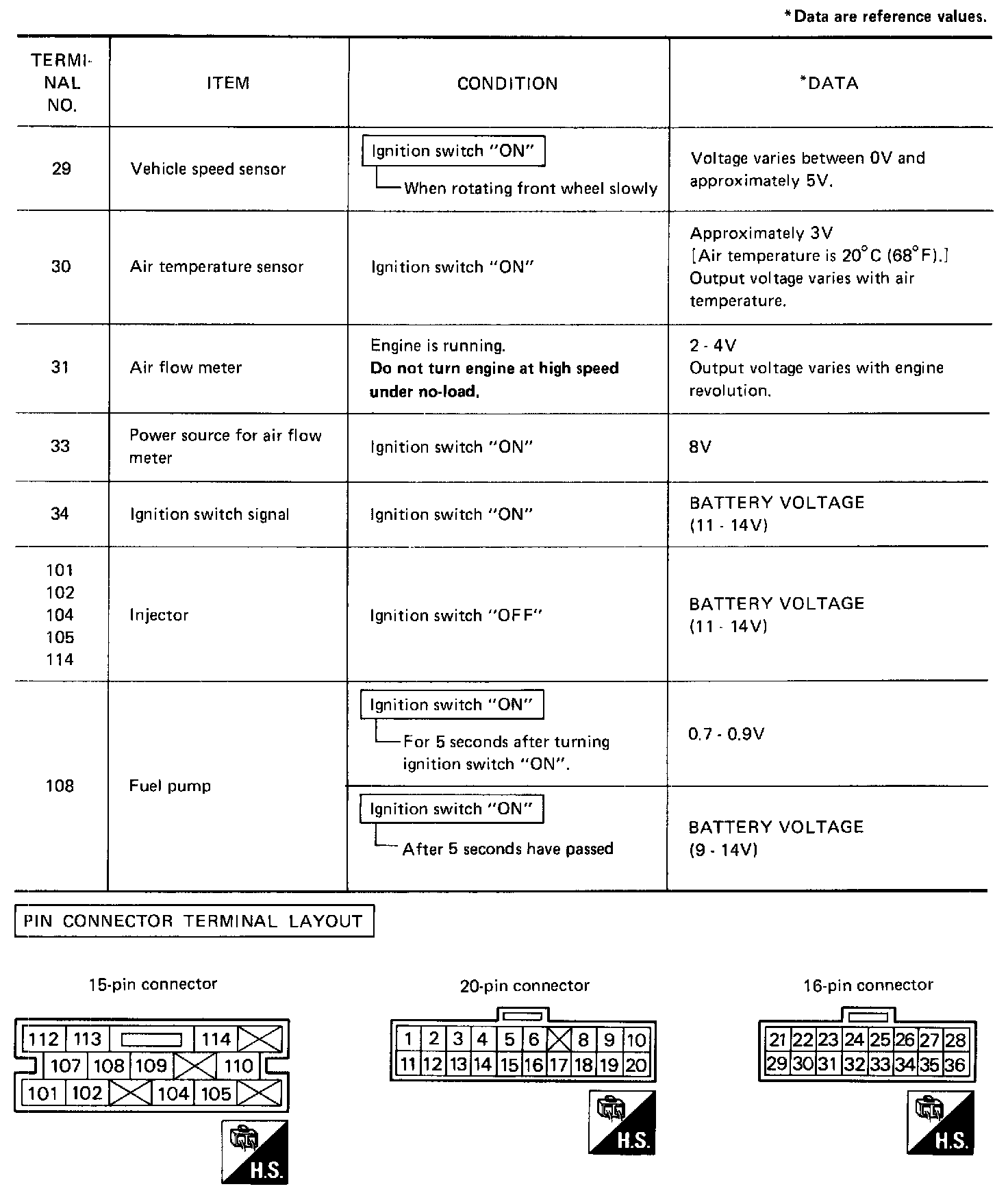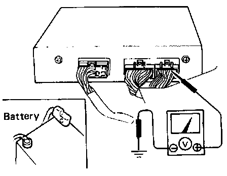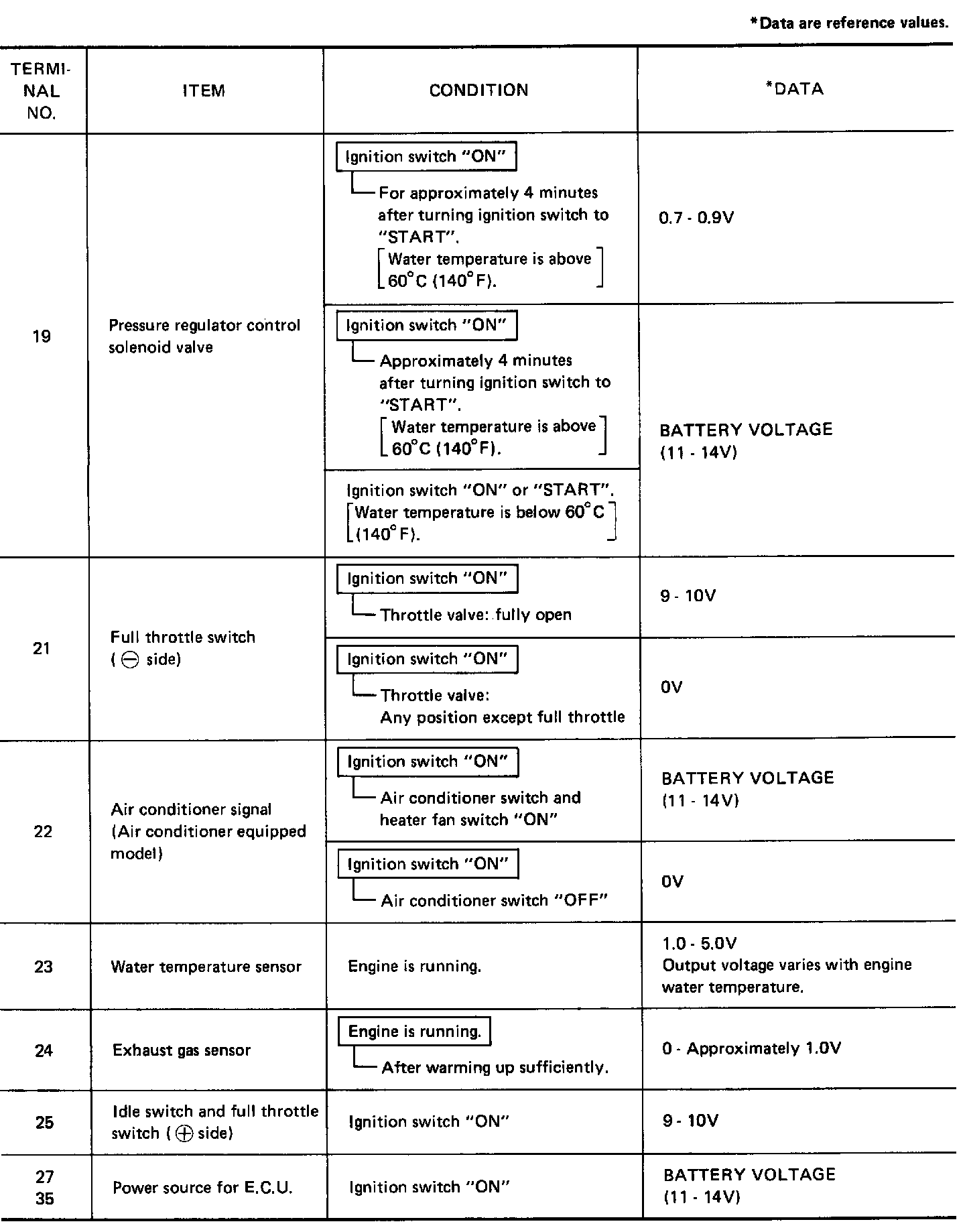 7. Measure the voltage at each terminal by following the "E.C.U. Inspection Table".