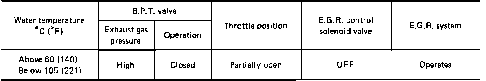 The EGR valve is controlled by the ECM through the EGR solenoid and by exhaust back pressure acting on the Back-Pressure Transducer (BPT) Valve. Vacuum is allowed to the EGR valve on acceleration and shut OFF upon deceleration or idling. The diaphragm mounted in the BPT valve raises in relation to exhaust pressure, opening an orifice allowing vacuum to be applied to the EGR Valve in response to the throttle opening.