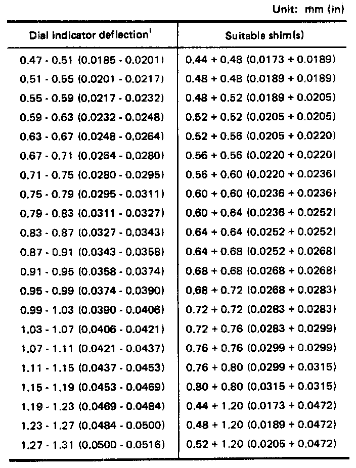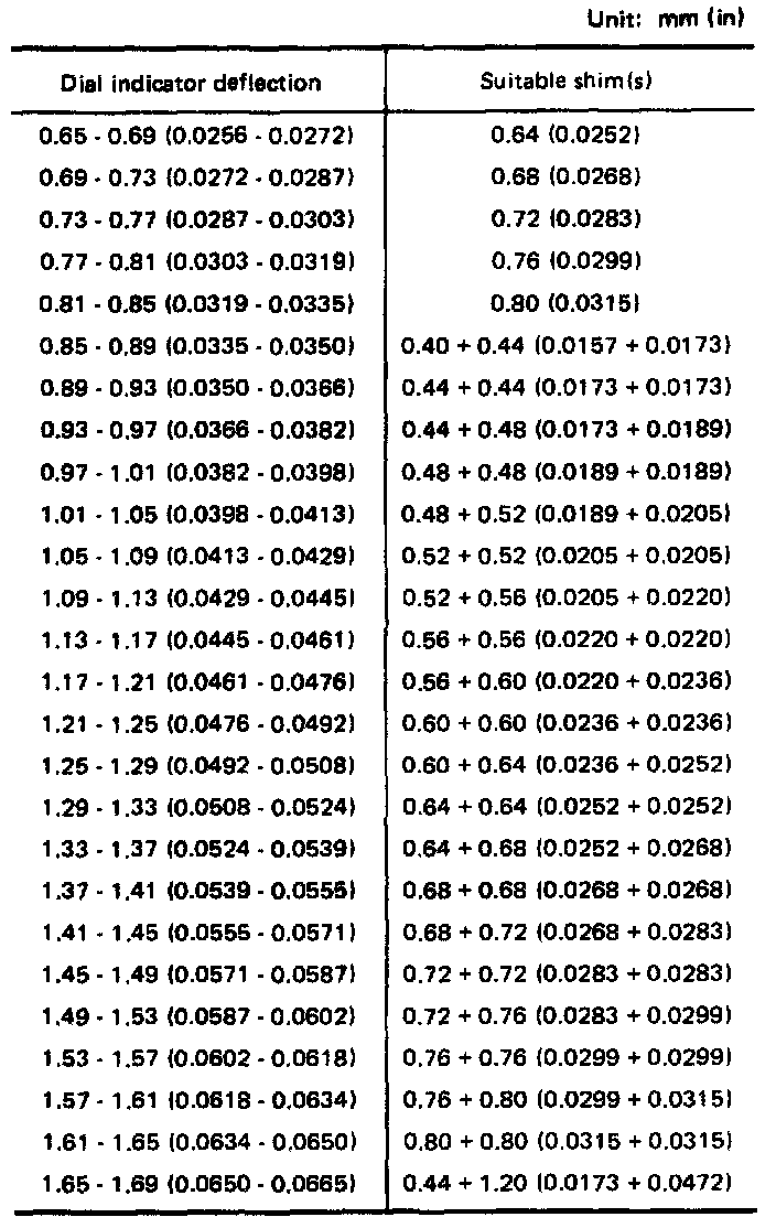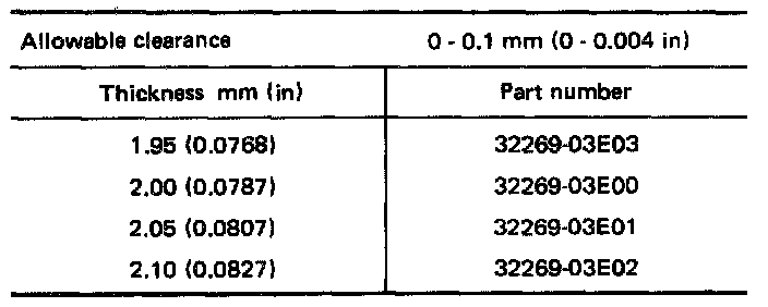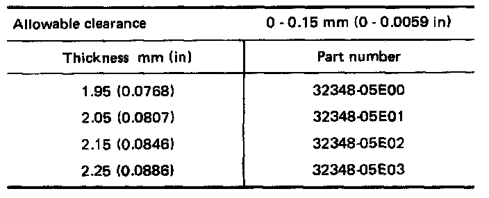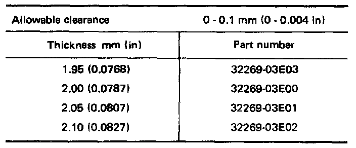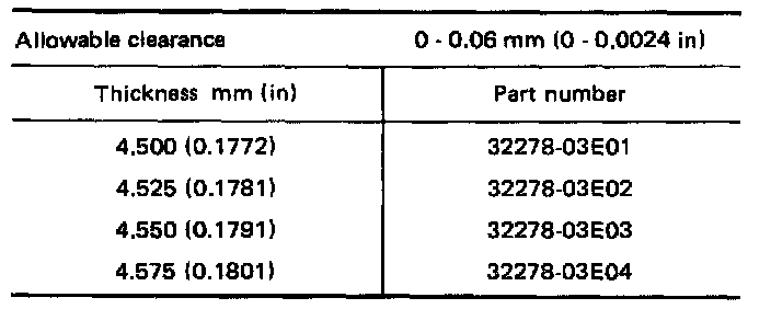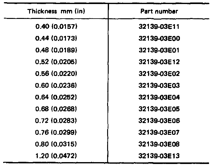 Available Shim - Table For Selecting Input Shaft Bearing Adjusting Shim:
