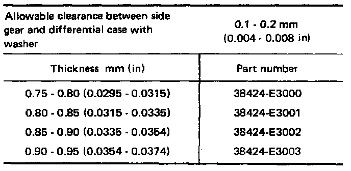 Available Shim - Table For Selecting Differential Side Bearing Adjusting Shim(s):