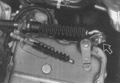 2. Connect control cable end to manual lever in transaxle unit, and tighten control cable securing bolts.