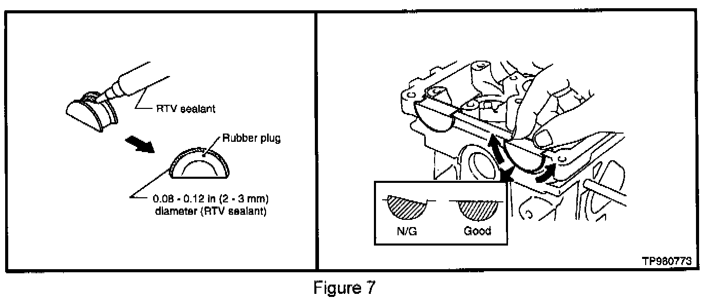 5. Install rubber plugs into cylinder head after applying RTV sealant (see Figure 7).
