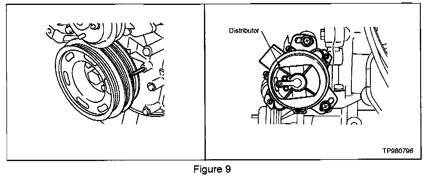 ^ If the vehicle is a 1991 through 1994 refer to Figure 9. Make sure the # 1 piston is set at TDC and that the distributor rotor is set at # 1 cylinder spark position.